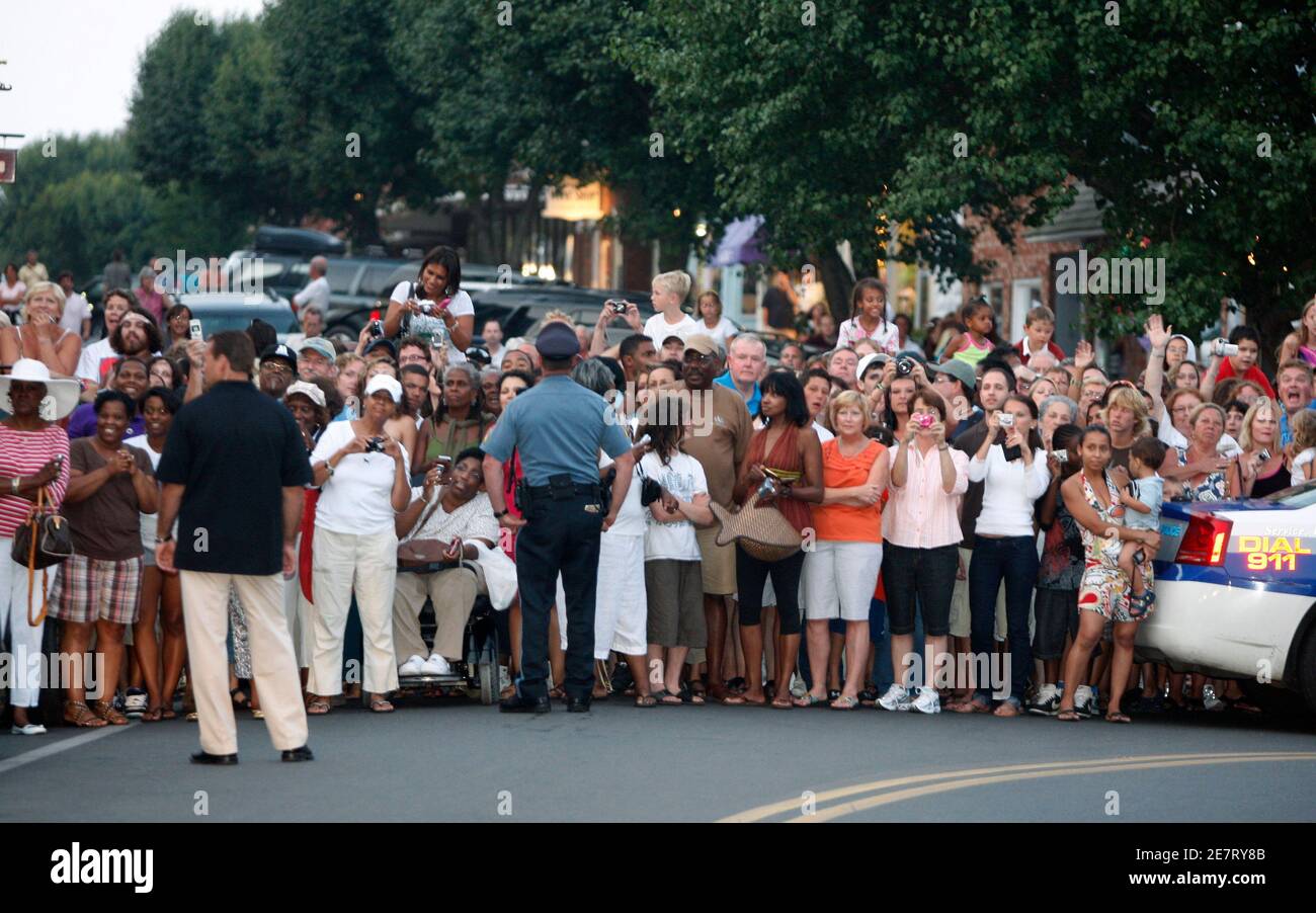Crowds Watch On Main Street As U S President Barack Obama And First Lady Michelle Go To Dinner At The Sweet Life Cafe In Oak Bluffs On Martha S Vineyard August 25 2009 Reuters Jason